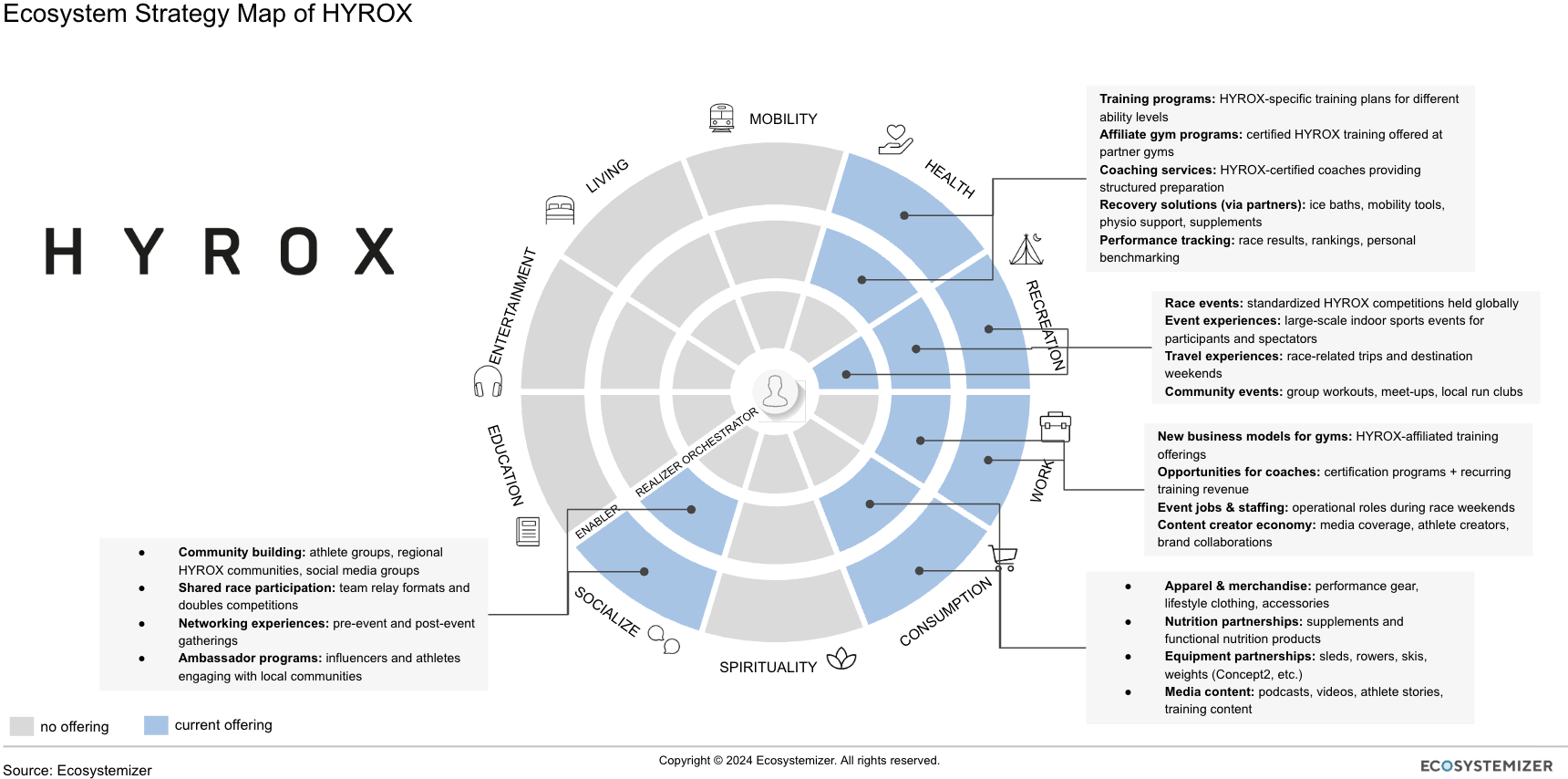- How the Ecosystem Strategy Map (ESM) helps explain HYROX’s positioning across Life Areas and Ecosystem Roles.